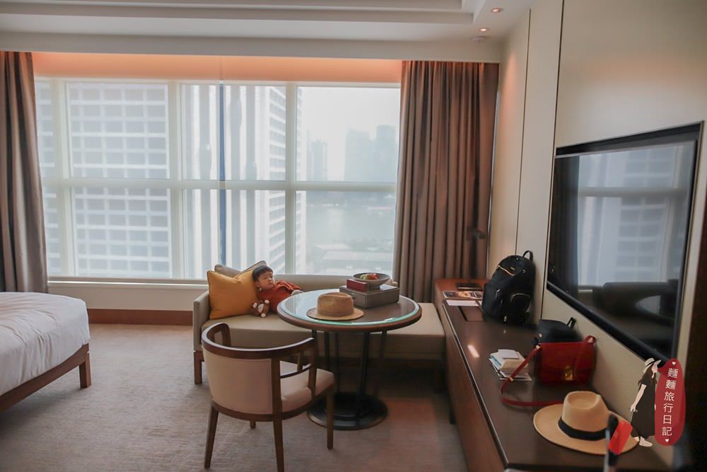 房間整體明亮舒適,一進門床旁邊就是一整片的景觀落地窗,我們住在26樓,雖然一旁比鄰高樓大廈,但是白天採光明亮,晚上更可以看見新加坡夜景唷!窗邊還有一個躺椅,天啊天啊天啊~有這片美景村長我就先躺下了~ZzzzzzzZ