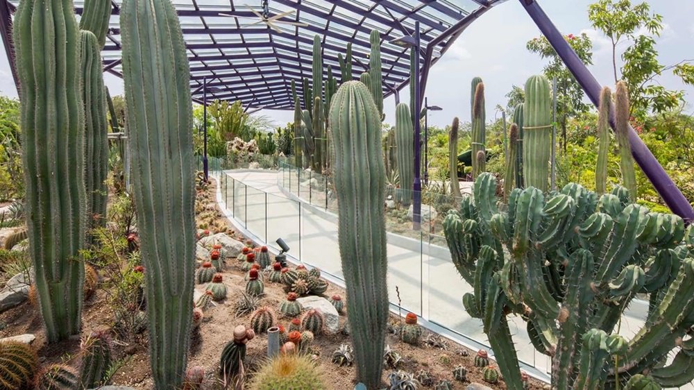花穹 Flower Dome就是一個裡頭模擬地中海、亞熱帶一樣的氣候,溫度會一直保持在23-25度左右,跟四季如夏熱死我也的新加坡比起來,花穹裡的溫度真的是乾爽舒適多了!花穹共分九大區域,每個區域裡都有來自世界各的稀有植物,顏色五彩繽紛、眼花撩亂!這要逛多久啊~~~感覺很多植物跟裝置藝術可以慢慢欣賞慢慢逛喔!