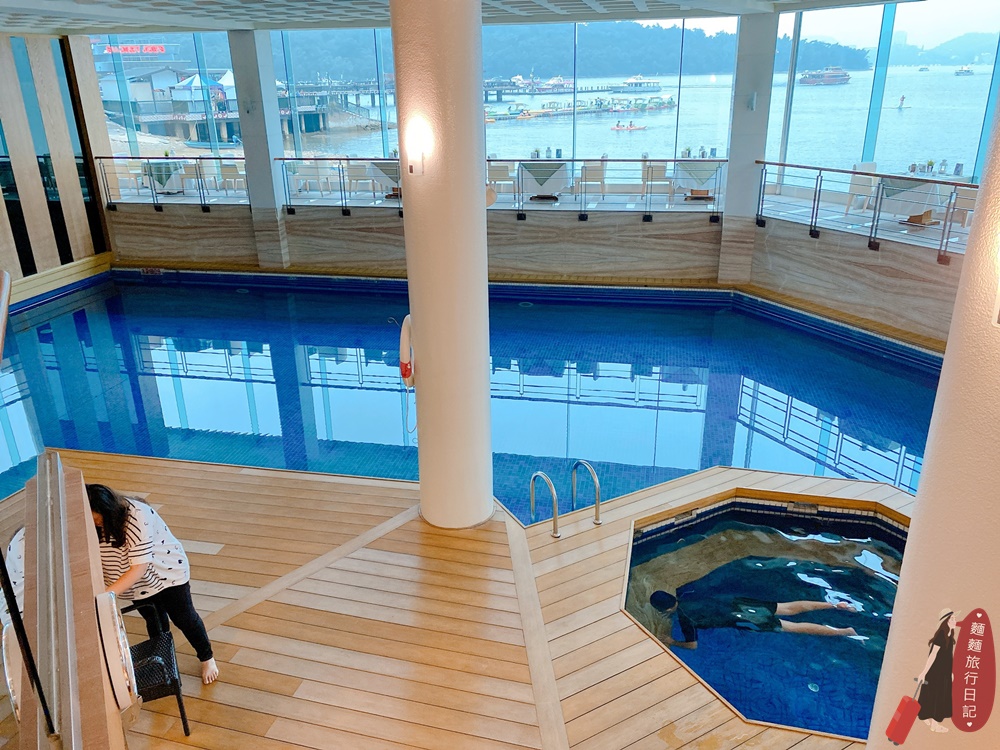 飯店的公共設施幾乎都集中在1樓,一樓的游泳池是室溫水喔!適合夏天玩水。