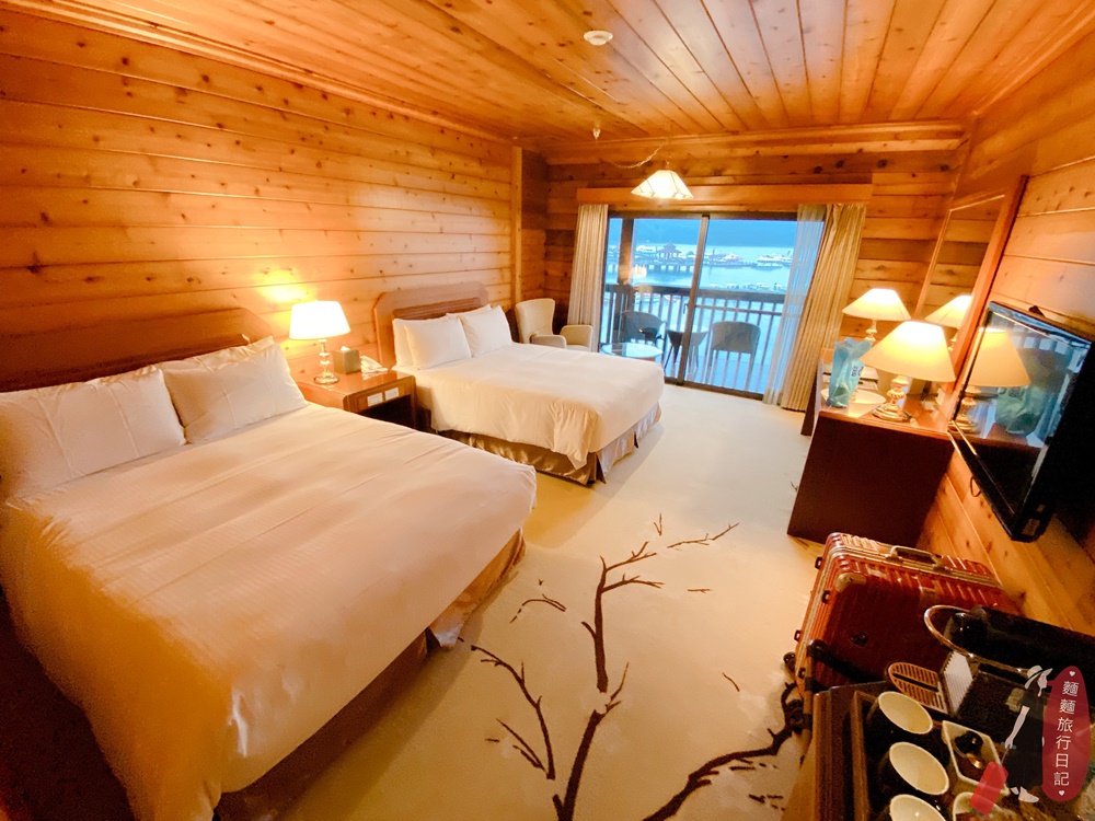 豪華湖景四人房總坪數是12坪,有兩張雙人床房型。
