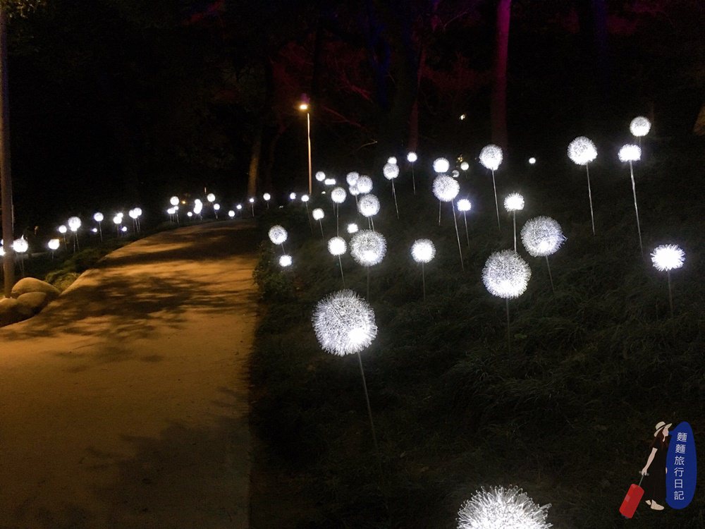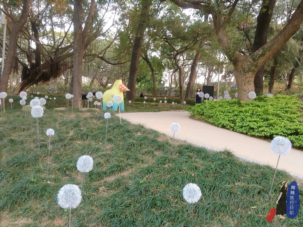 新竹公園裡面有許多藝術家設計的裝置藝術,像是這個蒲公英是藝術家運用玻璃彎管灣成一整片蒲公英田,到了晚上的時候一株一株的蒲公英還會發光呢!
