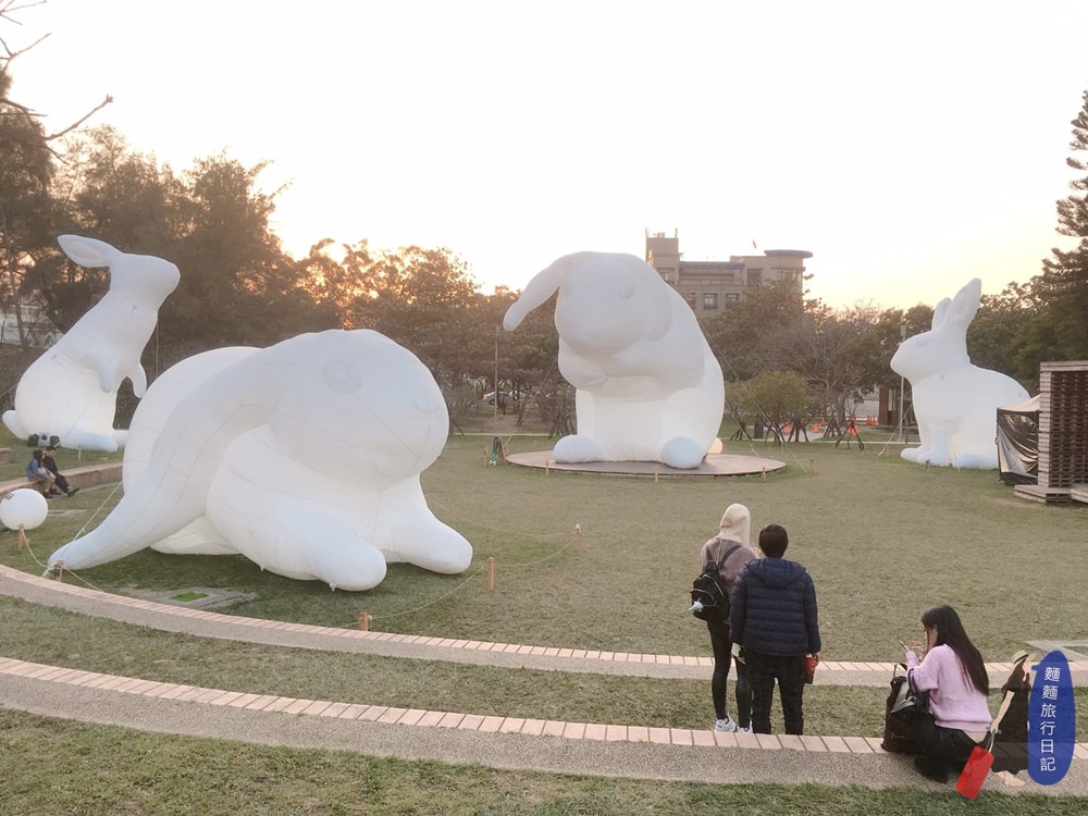 新竹公園裡面總共有5隻7尺高的巨大兔兔在草地上,藝術家的創作靈感來自澳洲家鄉有許多兔子,還有一隻兔子藏在新竹公園裡的某處。