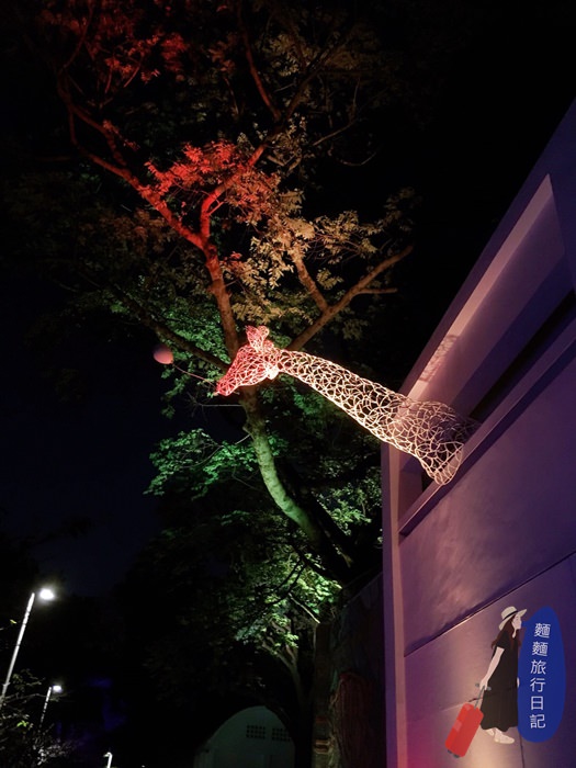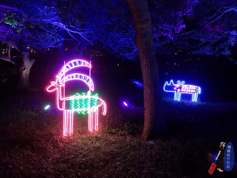 公園裡藏在樹下的羚羊與鱷魚,一到晚上搖身一變變成美麗的霓虹羚羊與霓虹燈鱷魚,有一種在開派對的Fu~~~