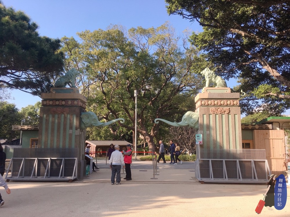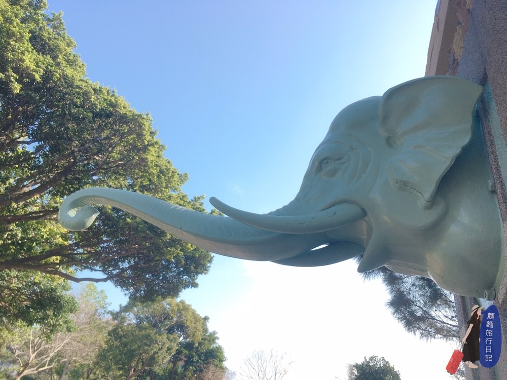 2號出入口的大象門,栩栩如生的大象跟獅子的雕像,是民國38年由日本設計師模仿德國漢堡的哈根貝克動物園大門建造而成的,全雕塑都以純銅製作,至今依舊保持得非常完整,為了重現最初動物園銅像的顏色,特別延請許多考古灣家進行考證與修復,總共從大象與獅子的雕像上撥了13層顏料下來,才發現原來最初的顏色是水藍色,還原歷史大象門。