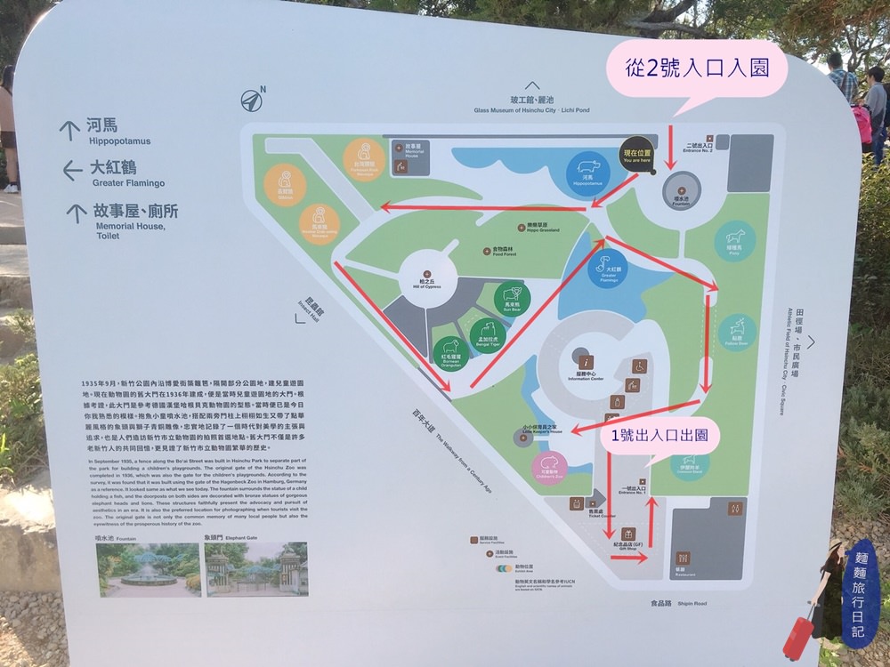一進到動物園裡面就會看到園區內的位置圖,紅色箭頭是村長這次遊園的路線,園內指標滿清楚的,慢慢逛跟著指標走,就可以很順的逛到出口了。