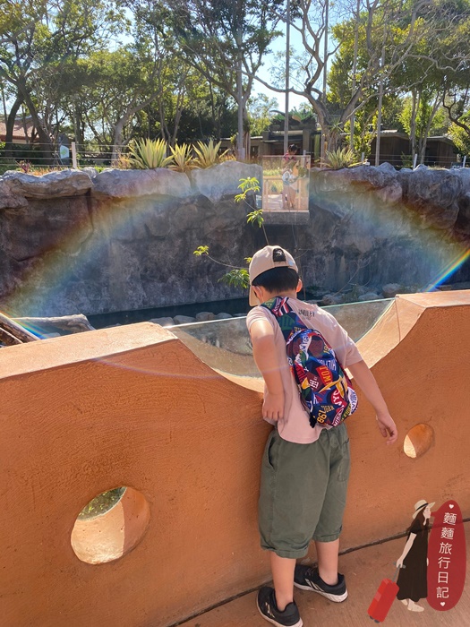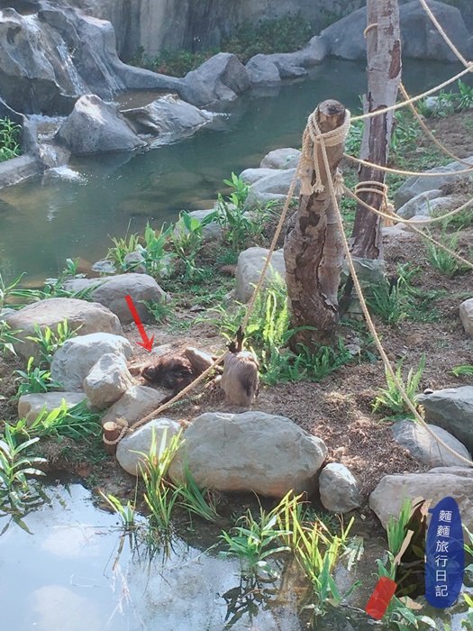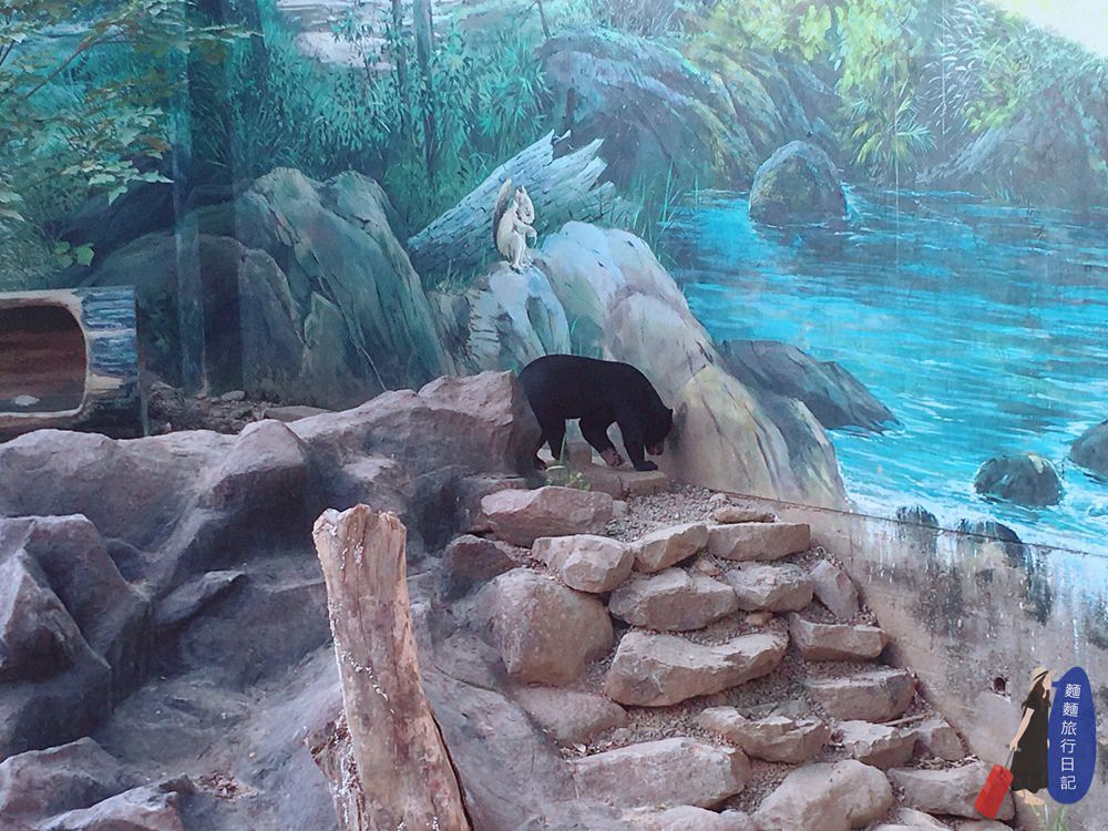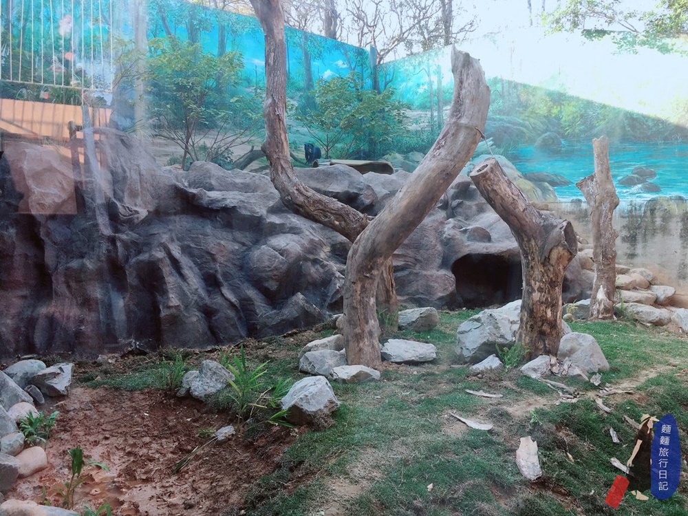 孟加拉虎旁邊就是馬來熊的家囉!咦~但是熊在哪??? 又在跟村長完躲貓貓了!馬來熊一樣有兩隻,馬來熊是生長在動物雨林裡面的雜食性動物,喜歡吃蜂蜜。