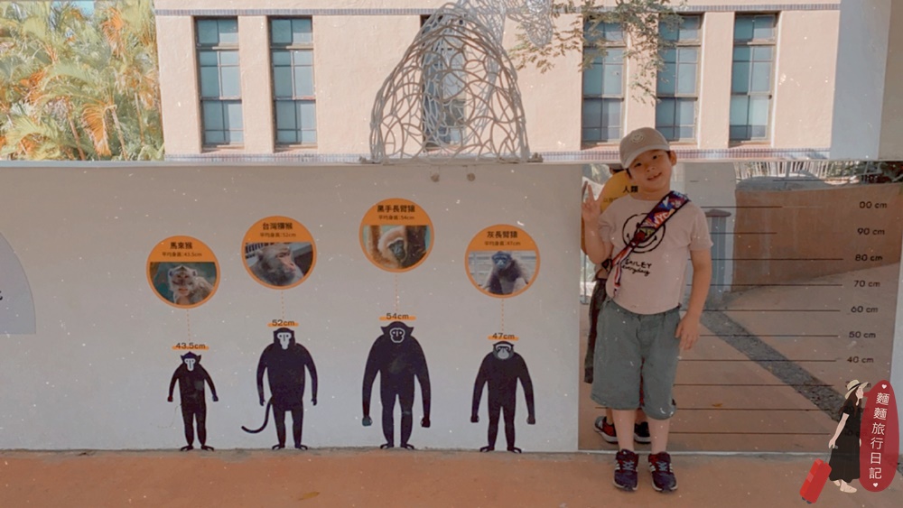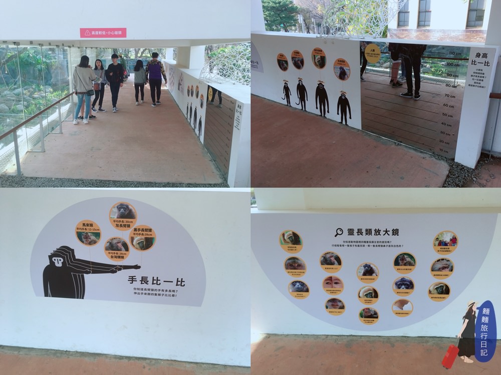 走道裡面用的是玻璃透視景觀窗,讓小孩也可以輕鬆就看到長臂猿,景觀窗對面則是介紹靈長類的小知識。