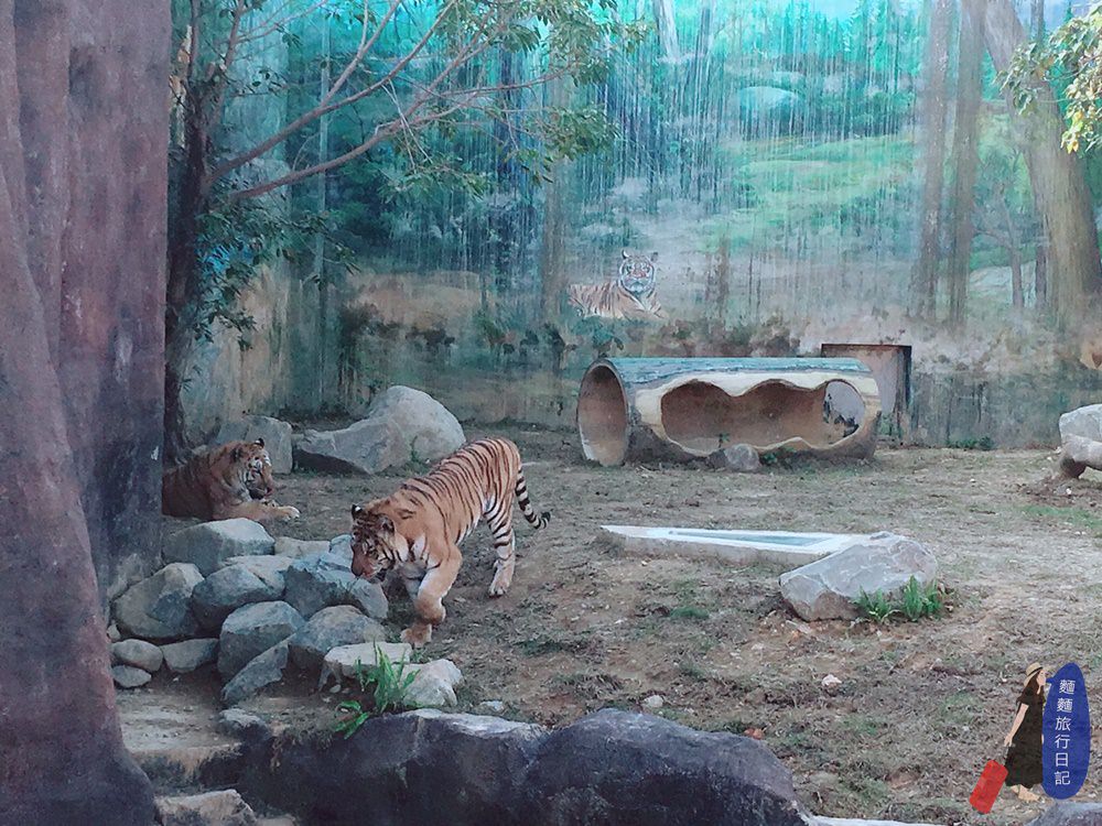 我覺得孟加拉虎是新竹市立動物園必看的動物,也是最有誠意的動物之一了,新竹市立動物園住的這兩隻孟加拉虎已經是阿公等級的歲數了,牠們倆是兄弟六福跟來福,牠們住的地方是上下兩層,大家除了可以在上方往下觀看之外呢。