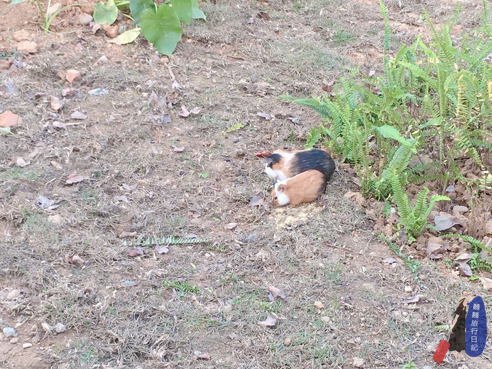 可愛動物區還有一整群的天竺鼠,在草地上一直吃東西,很可愛,村長對天竺鼠的印象一直都是小小一隻,怎麼在動物園裡面變得這麼大隻,看起來吃很好,每隻都頭好壯壯,除了天竺鼠外,另一邊還有孔雀唷!