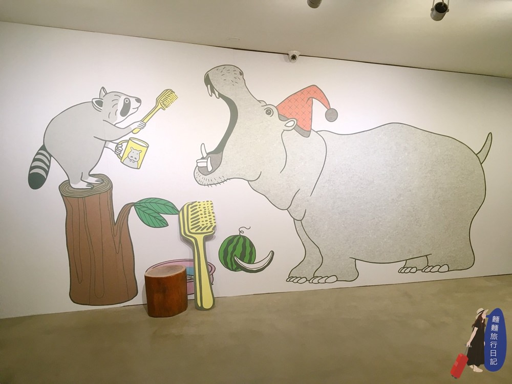 還有一片牆可以讓親子一起幫河馬刷牙,拍照留念,很有巧思的設計。