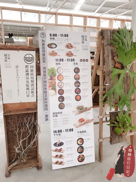 空氣圖書館提供的餐點都是選用梅山在地的蔬菜,有早午餐、火鍋、定食、下午茶、點心跟飲料!