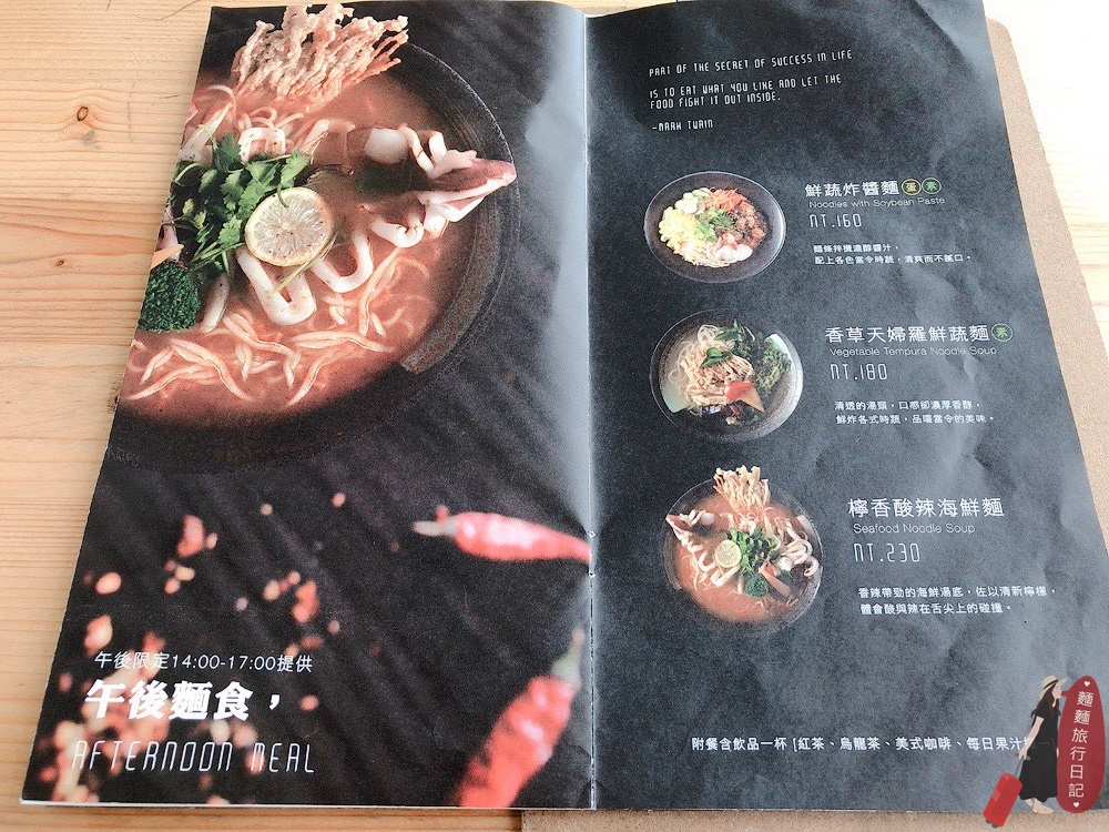 然後還有一類菜單是午後麵食,只限下午14:00~17:00提供喔!下午吃麵會不會太飽了呀~~~附餐可選一杯飲料,感覺這根本是午餐的菜單吧!麵有三種口味讓大家做選擇,看起來都好好吃呀!