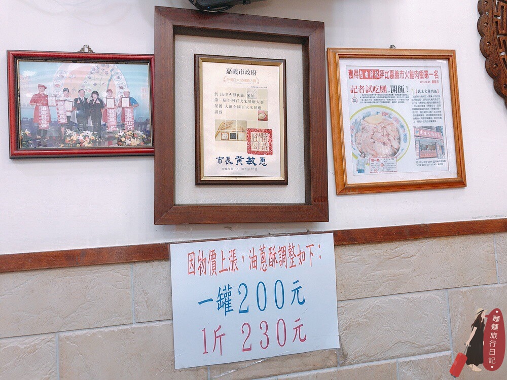 牆上除了菜單外還有不少雞肉飯的得獎照片、獎狀跟報導,民主火雞肉飯跟其他家比較不同的就是,火雞肉飯除了醬汁跟雞肉外,還多加了油蔥酥喔!吃完如果喜歡油蔥酥的味道,還可以單買整罐的油蔥酥回家,煮麵、燙青菜的時候加一點油蔥酥,馬上就晉升古早好滋味了!