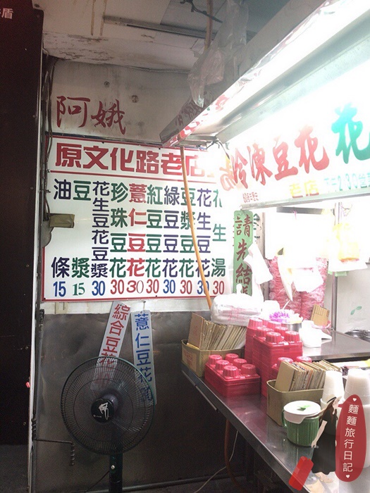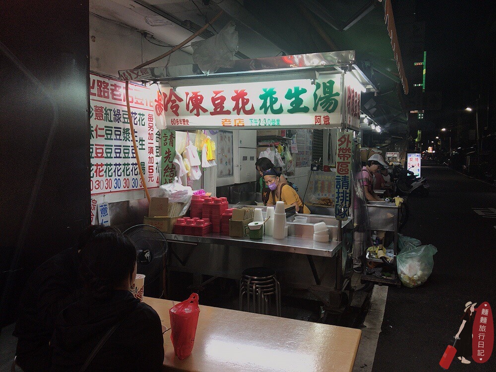 這間在文化路夜市開了將近60年的阿娥豆漿豆花店,沒有店面是在路邊佇立的小攤位,但是每到假日排隊人潮總是絡繹不絕,是文化路必吃美食之一。