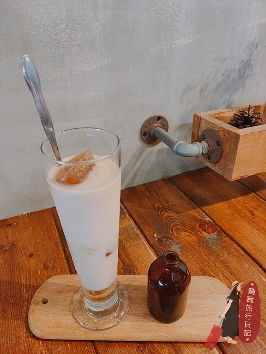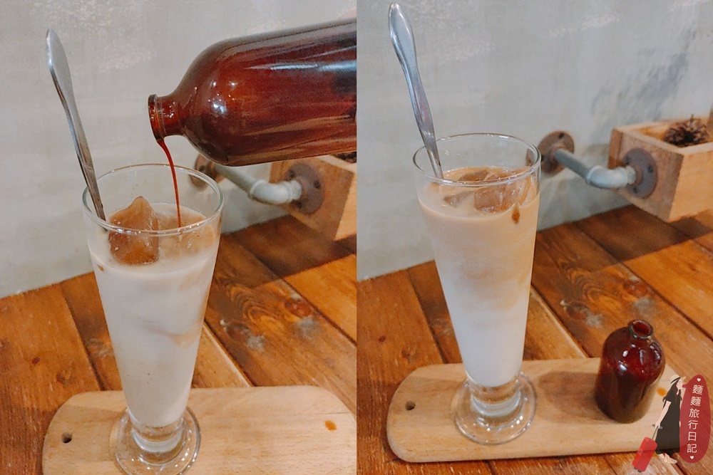 極推冰拿鐵,送上來的時候杯子裡是牛奶,加上咖啡冰磚,旁邊那壺是咖啡濃縮液,可以依個人對咖啡的濃淡味自行添加喔!