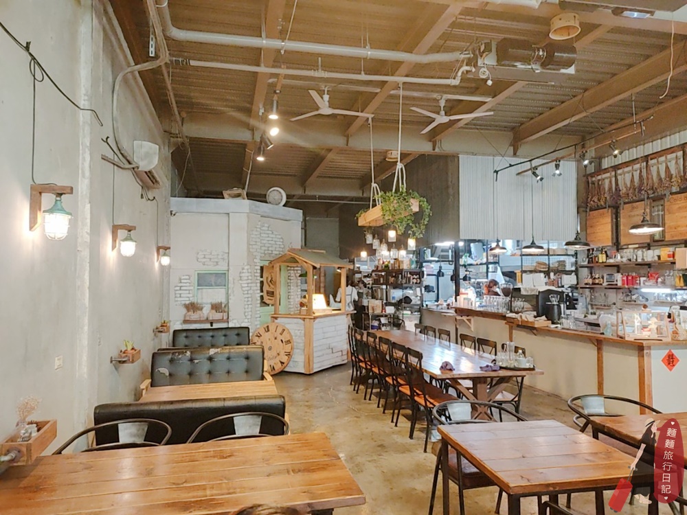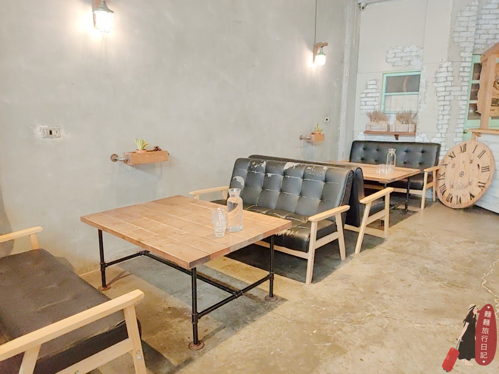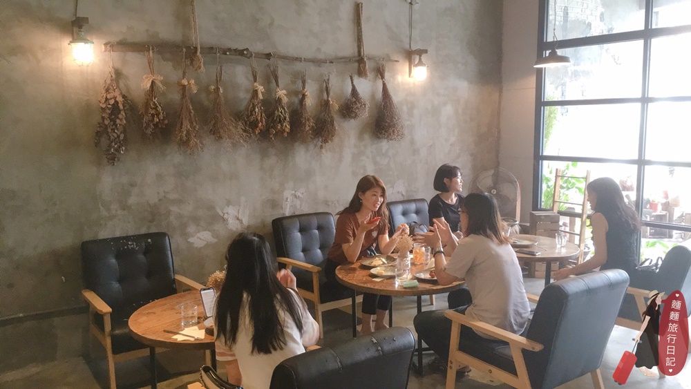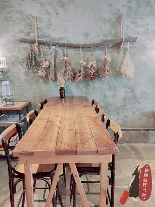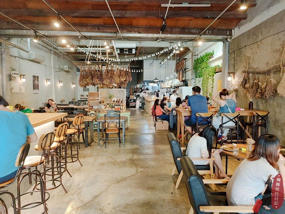 餐廳環境非常寬敞,座位桌數也很多欸!沒想到走進去別有洞天,地板跟牆面都是赤裸裸的水泥牆呈現,卻意外的別有一番風味,搭配綠色植物的點綴與乾燥花裝飾,讓原本的鐵皮屋變成網美店啦😂~