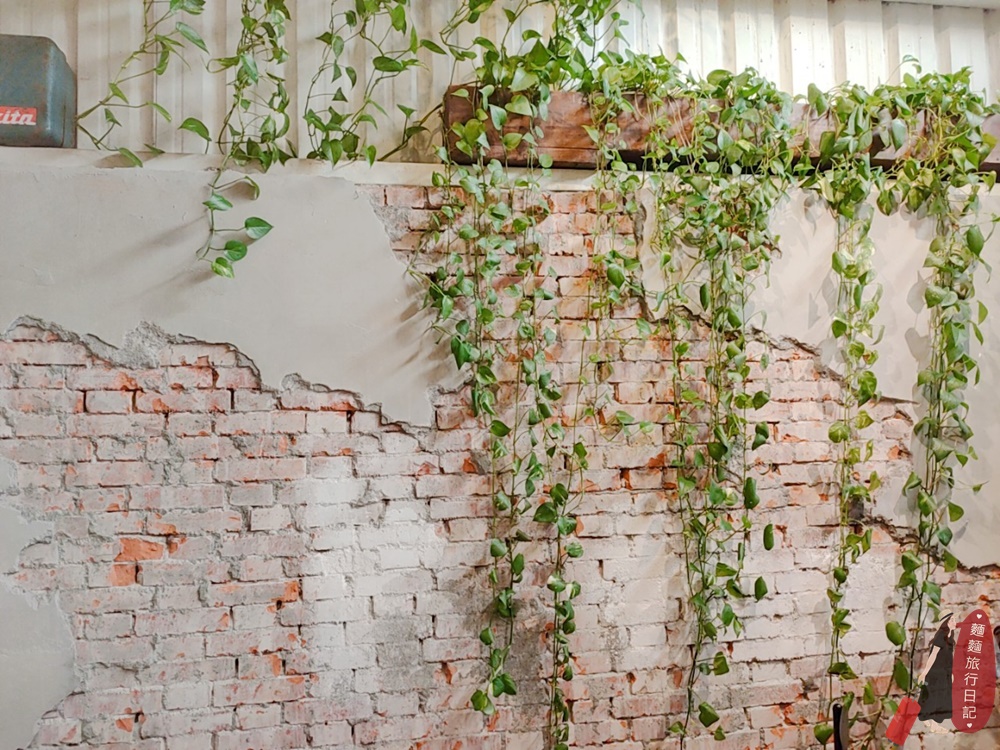 紅磚牆還搭配著垂掛下來的綠色植物,很有味道啊~