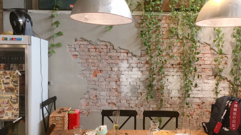 對面也是一張可以容納12人的長桌,這個座位區的後方是裸露的紅磚牆,真的好好看啊!是我最愛的一面牆了。