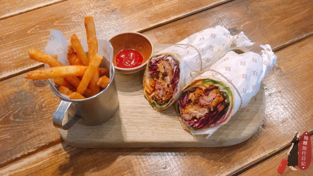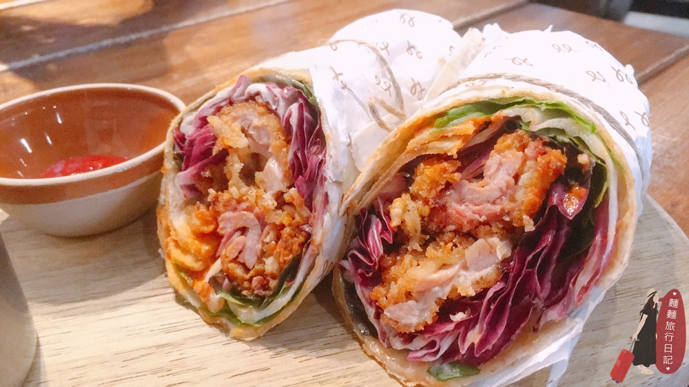 用壓碎米果取代炸雞外皮的米果卡啦雞腿捲,口感意外的酥脆且不油膩,但是捲餅皮搭配上大量的蔬菜,加上有點酸酸甜甜的很像泰式的醬料,但事實上是剝皮辣椒美乃滋喔,意外的清爽又解膩,明明就是來吃下午茶,還是忍不住點了一份鹹食。