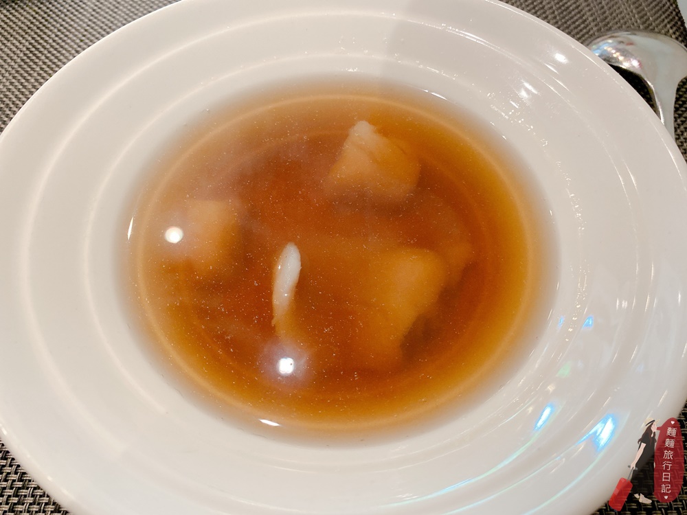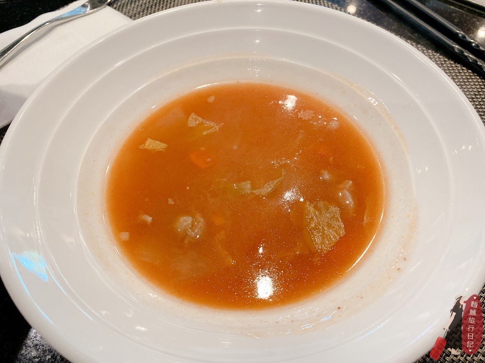 今天只有我跟大猴來用餐,小屁孩們都去上學了,套餐裡的湯有兩種可選,大猴喝的是藥膳魚片湯,味道清爽暖胃,藥膳味道不重,重點是裡面魚片量很多!很推~