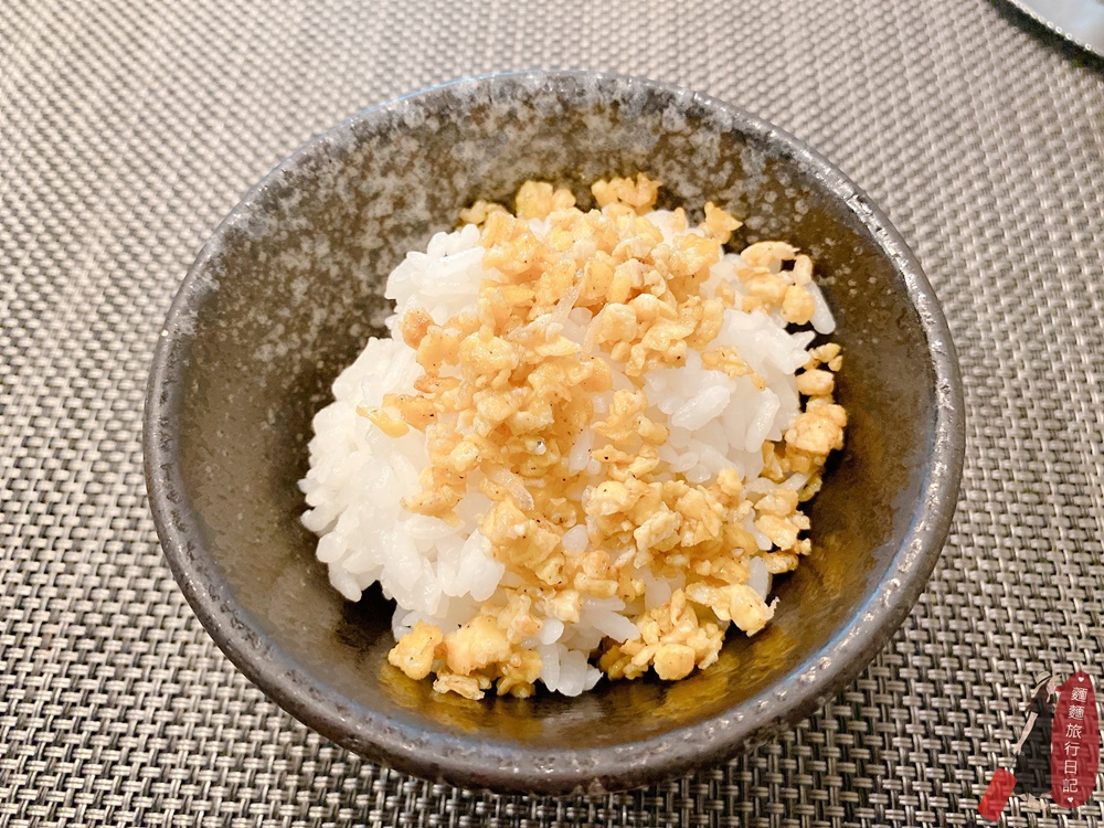 這碗驚天動地的白飯!!!白飯上面鋪滿炒過的蛋碎,還混了點吻仔魚這樣,不論大人小孩都會愛死的白飯,香氣撲鼻很下飯~