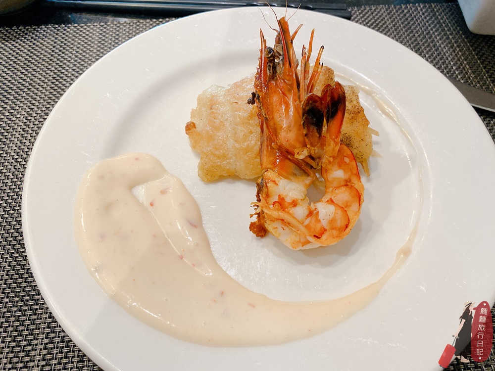 接下來是套餐都有的海鮮盤,蝦新鮮脆口好吃,沾醬更出色,醬是很濃的美乃滋,魚感覺是多利魚,表皮煎不夠酥有點可惜,應該是麵糊調的不好!