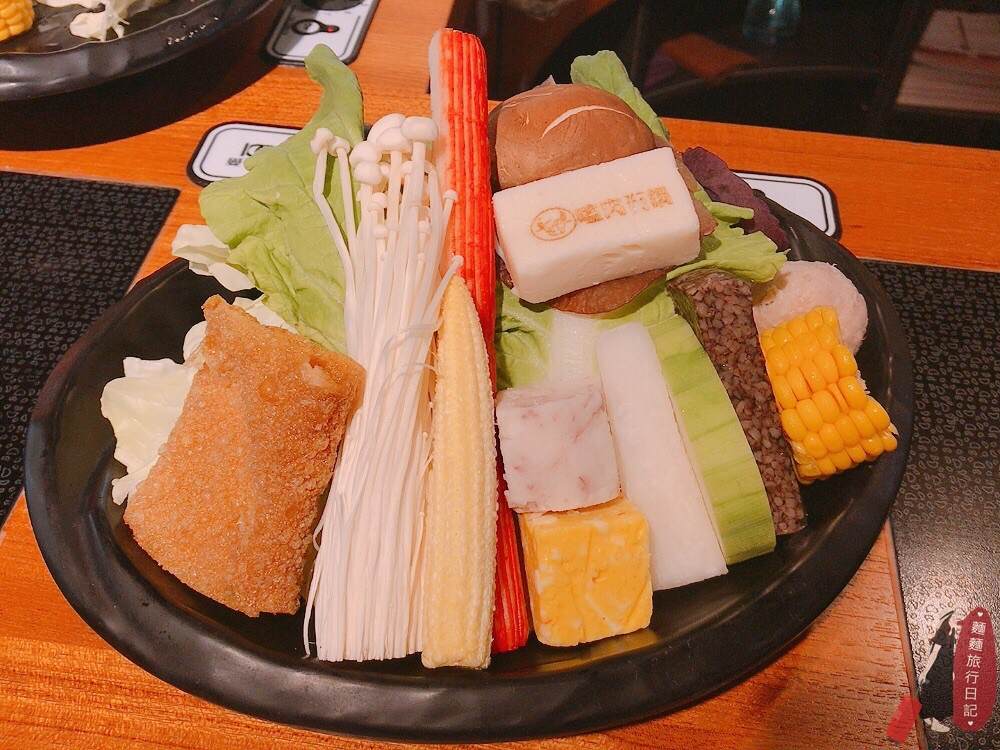 嗑肉石鍋的菜盤是我吃過的套餐式火鍋裡覺得最推最好吃的菜盤了,火鍋料不多,如果不吃火鍋料的人還是可以把火鍋料換成其他蔬菜喔!蔬菜都很新鮮,裡面有一根超長的蟹肉棒非常深得我心外,那塊印有嗑肉石鍋的豆腐很好吃啊!菜盤裡面還有讓我印象深刻的山藥跟紫地瓜,店員說紫地瓜其實他們都事先蒸熟了,丟下去煮熱就可以吃囉!紫地瓜很甜很綿密很好吃~好想再多吃幾塊啊!