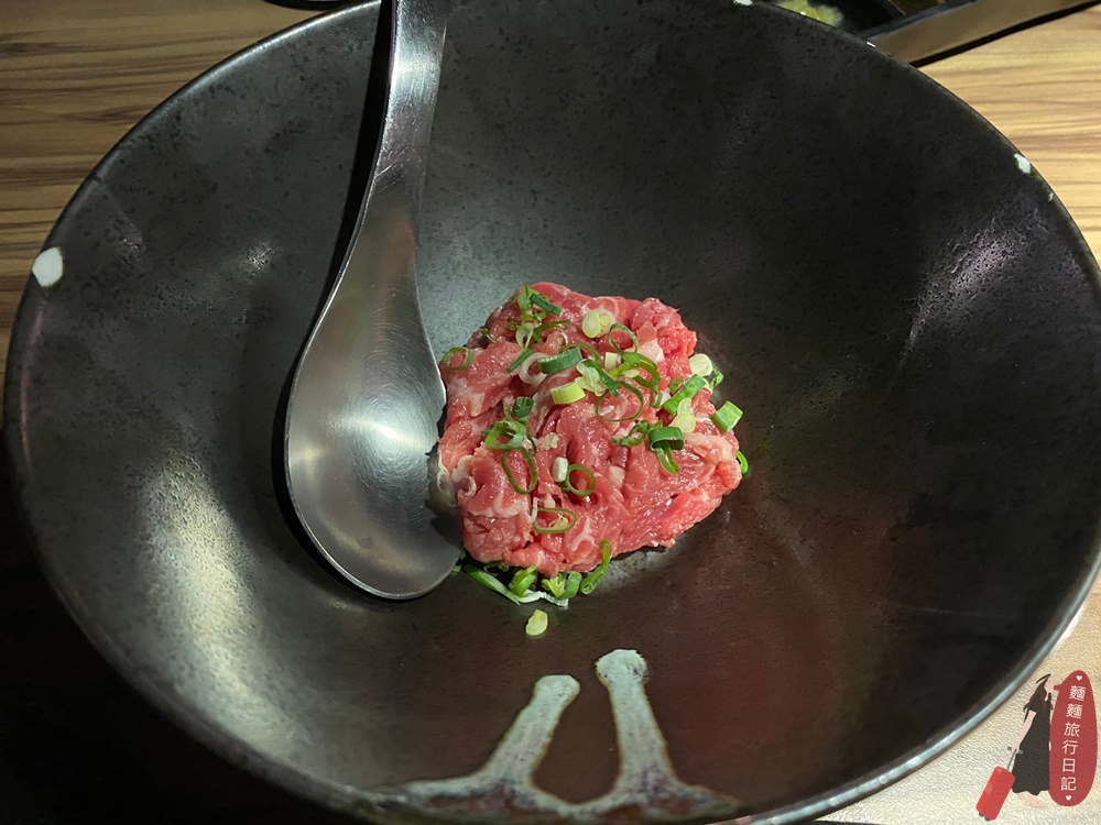 不得了啦店員會來你桌邊用熱滾滾的高湯桌邊現沖給你看~ 牛肉切的非常薄,沖進味增湯後肉片就會呈現剛剛好的熟度,味噌是京都白味增,味道沒有很重,喝起來反而是清爽的口感,有一種在喝台南現沖牛肉湯的感覺。