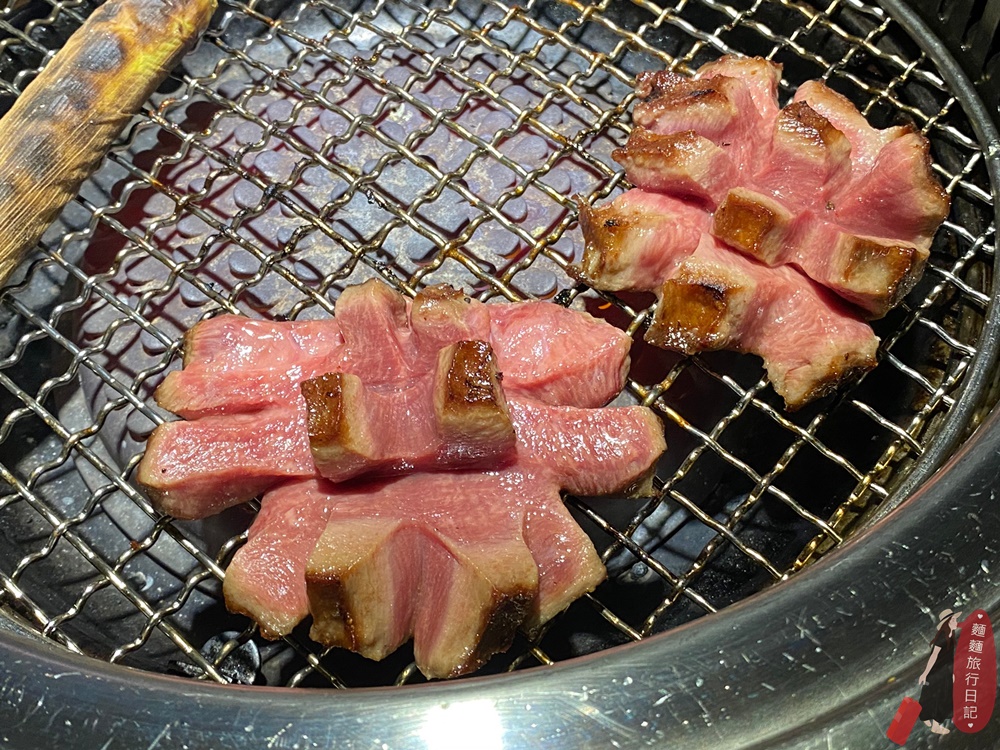 經過店員巧手烤過後,牛舌直接大開花,在烤的過程中我就看見那油花肉汁在跟我招手啦啦啦~村長眼睛沒離開過烤網上的牛舌,迫不及待要吃下肚。