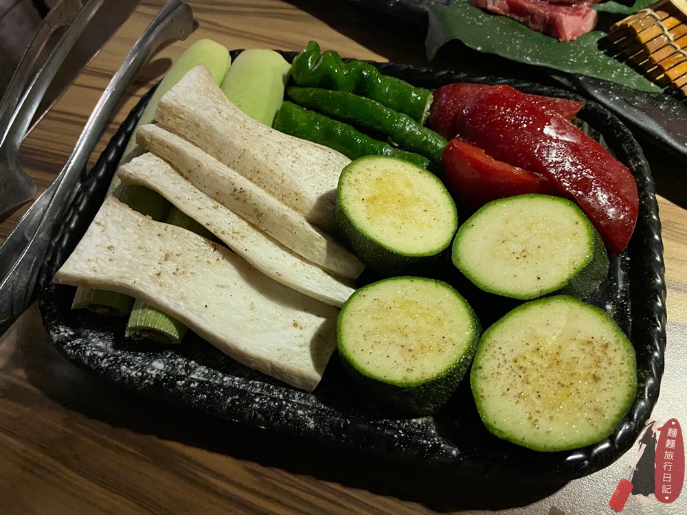為了要營養均衡村長還是有一盤蔬菜喔!蔬菜盤總共有五種不同的季節食蔬,大家睜大眼睛仔細看,有看到每一款蔬菜的厚度嗎?真的有夠豪邁的啦~烤起來真的鮮甜清脆多汁啊!就連蔬菜盤都在水準之上,讚!