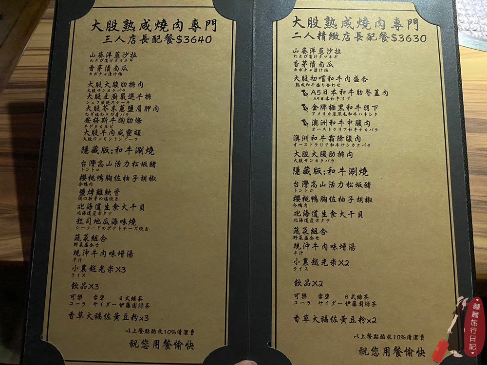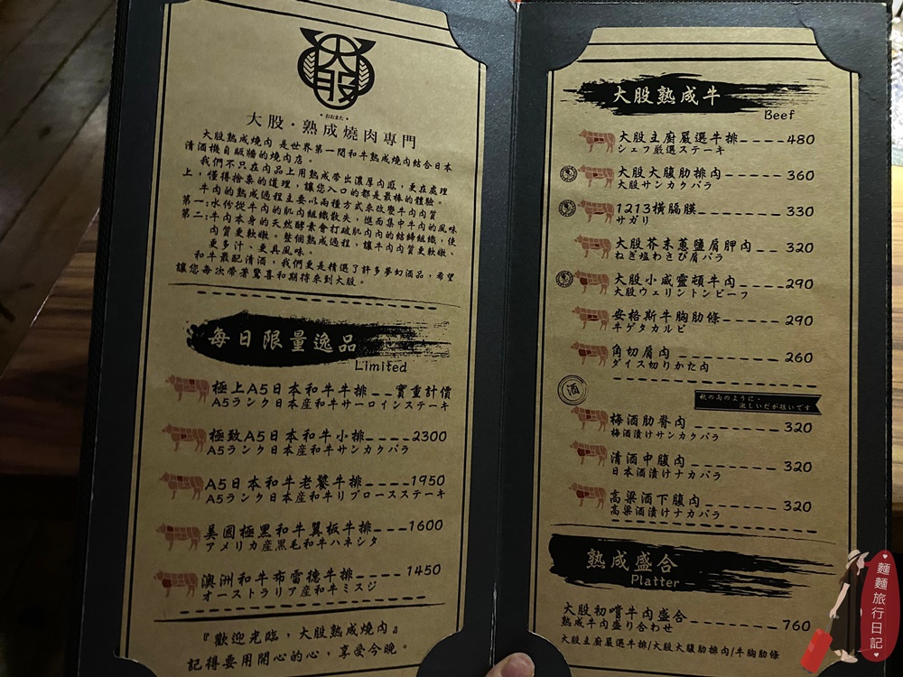 大股.熟成燒肉專門的菜單很貼心,每一個肉品前面都有標示這塊肉是哪個部位,超級顯淺易懂,不然每次點肉的時候都不知道到底是吃哪裡啦~