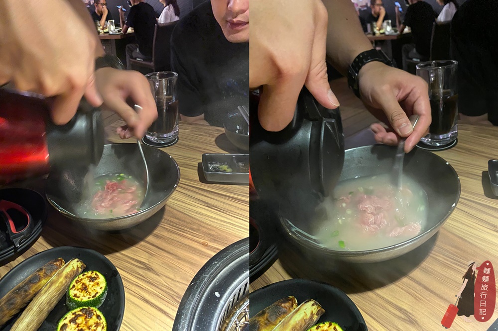 我們還點了一碗現沖牛肉味增湯,看到現沖這兩個字就忍不住點下去了,因為大股.熟成燒肉的肉片都是最好的部位切下來的,那不同牛肉、不同部位的邊邊角角切下來後,就造就了這一碗超強牛肉湯~