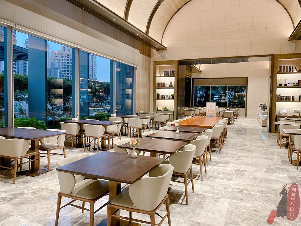 大廳的尾巴是早上吃自助式早餐的餐廳區!座位滿多,走道留的非常寬敞,是很舒服的用餐空間~順天環匯酒店的早餐種類其實不多,但服務村長大力點讚,早餐補的很勤很迅速,而且都滿好吃的唷!