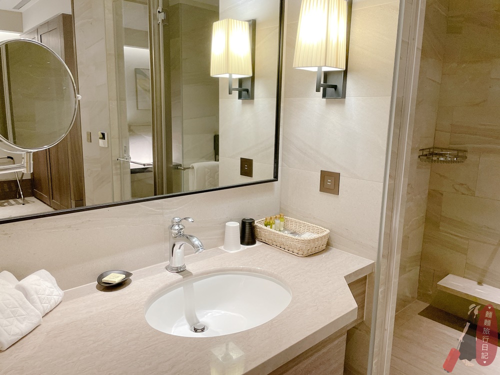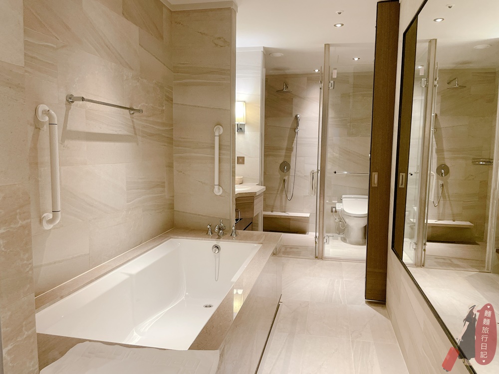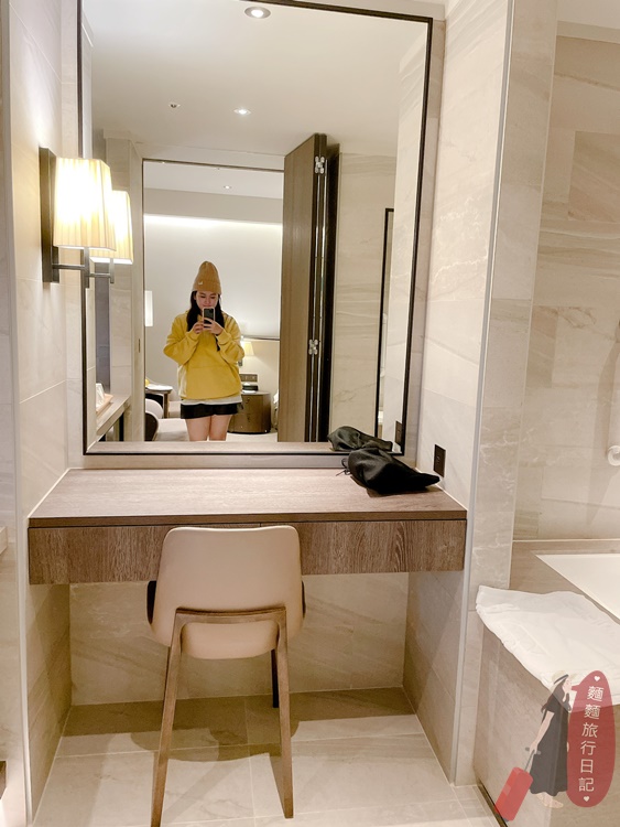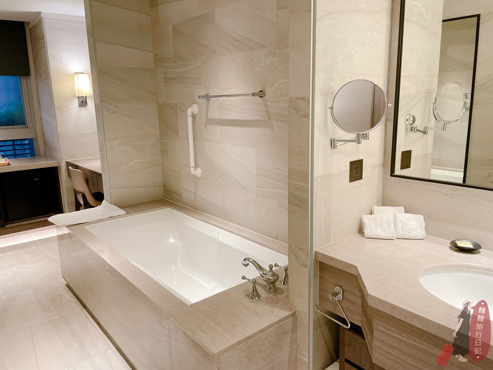 電視後方有一個超大的空間,藏了小小的茶水櫃跟衛浴空間,村長很推順天環匯酒店之一的原因就是每房皆提供浴缸及乾濕分離衛浴,而且浴缸還超級大超舒服超好泡的!