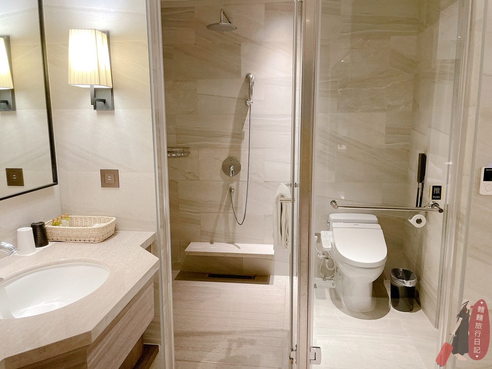 連接洗面台的轉角是乾濕分離的淋浴間,淋浴間旁就廁所~我覺得淋浴間的蓮蓬頭很鳥,水很弱,又忘記帶我最愛的韓國Aroma Sense蓮蓬頭出門,下次還是要自己帶才行啊!