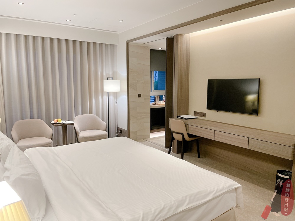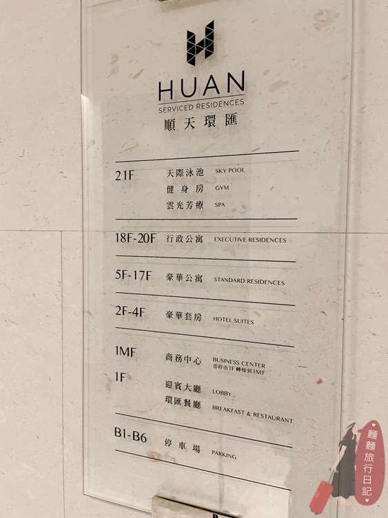 順天環匯酒店的房間在2~20樓,分成四種房型,雅緻客房、豪華客房、行政套房跟總裁行政套房,前三種房型是房間坪數的差別分別是11坪、13坪跟15坪,總裁行政套房是最大坪數總共有27坪,適合長期租客居住,在台灣並不常見的房型,有點像酒店公寓的概念,有大客廳廚房跟兩間臥室的公寓式房型~