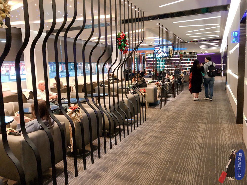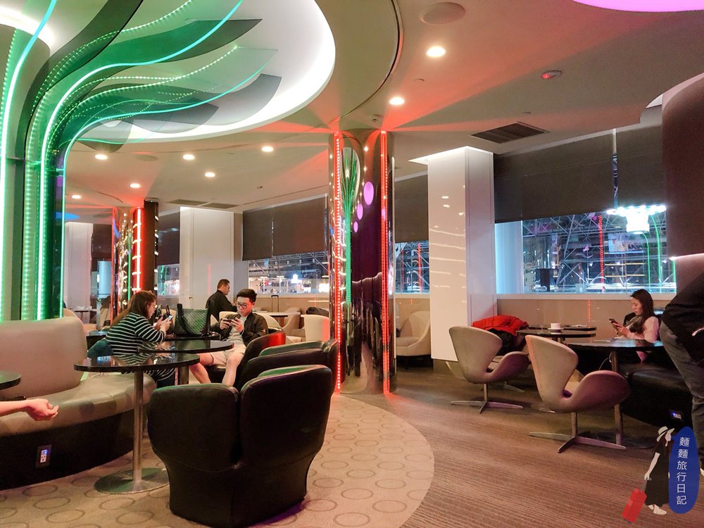 The Infinity的空間很寬敞,天花板上一點一點的是特殊設計閃爍的星空,這一區的座位有靠景觀窗的吧檯區跟兩人沙發座位區。
