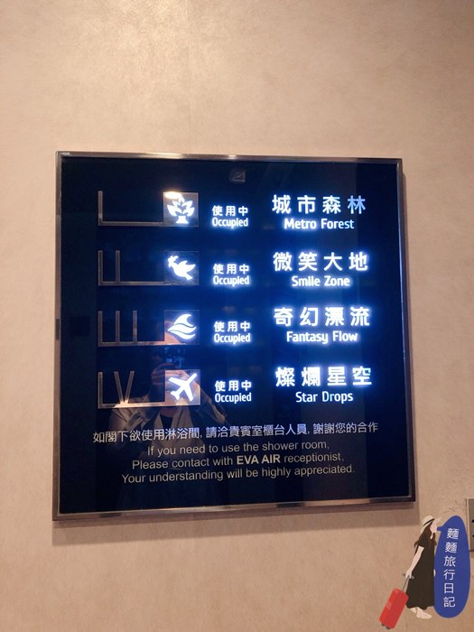 The Infinity裡面有提供四間寬敞明亮、乾溼分離、結合衛生設備的淋浴間,淋浴間提供的是歐舒丹的洗髮精、潤絲、沐浴跟身體乳耶,淋浴間還有不同的名字捏~分別是城市森林、微笑大地、奇幻漂流與璀璨星空,提供給轉機的旅客使用,要使用的話可以到櫃檯登記喔~