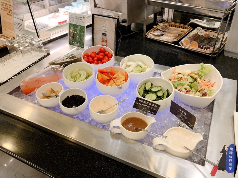 生菜沙拉提供的水果、蔬菜都很新鮮,這區重點是旁邊那兩罐,一罐不知道是什麼食品的冷泡茶;另一罐是Natural Benefits冷壓蔬果汁。