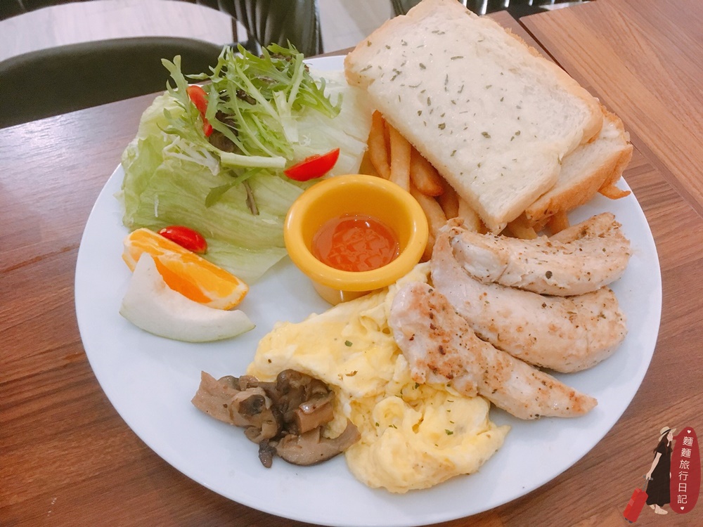 我們的餐點來囉~~~早午餐的分量女生吃會覺得超飽、男生吃就剛好飽!