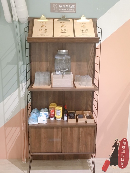 沐樂 More love早午餐是自助式的,找到自己喜歡的位子可以直接入座,水、餐具、調味料、面紙、菜單都要自取唷!