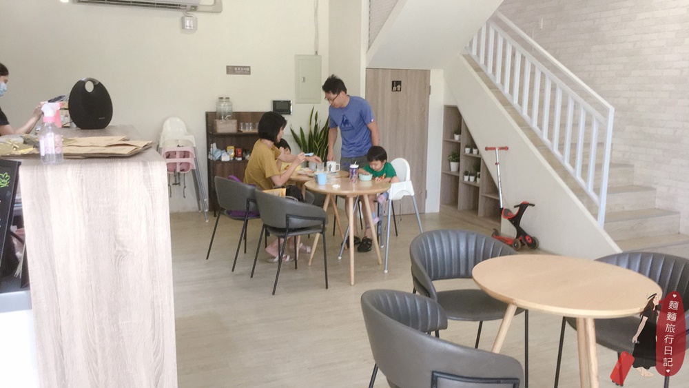 餐廳是挑高設計的樓中樓,一樓跟二樓都有坐位喔!餐廳有提供兒童座椅,應該是附近都是住宅區,當天村長來用餐的時候,有很多爸媽帶著小孩來吃早餐。