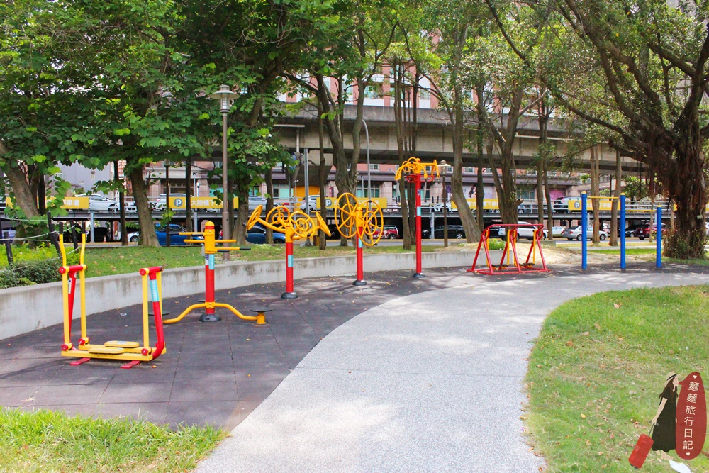 中央公園裡面除了小朋友的遊樂設施外,也有大人可以做運動的設施。
