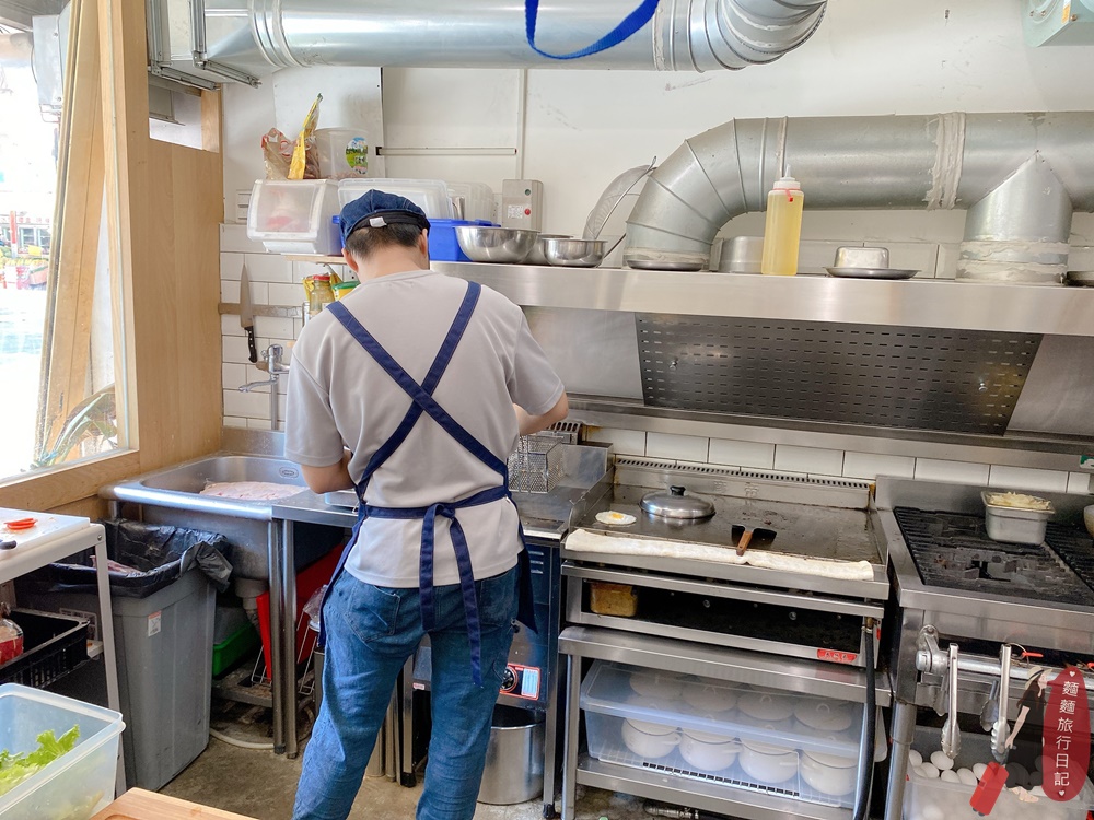 店裡的空間不大、座位也不多,但是生意超級好的,開放式的廚房對面有兩人座位區。