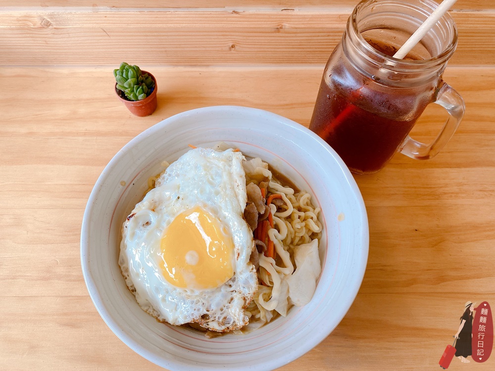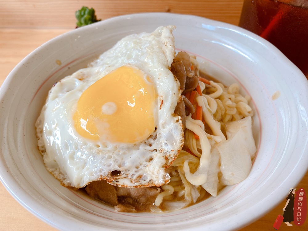 大猴的早餐當然沒有第二種選擇,有炒麵一定選炒麵,只是這碗不是台式乾麵是日式炒麵,上面那顆半熟的太陽蛋看起來好誘人啊!(扭)