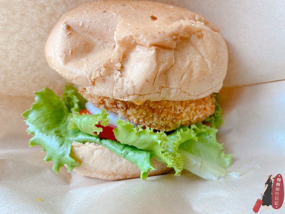 這顆漢堡真的有夠讚、有夠好吃,有沒有看到番茄生菜洋蔥超新鮮,跟滿滿馬鈴薯泥炸出來的可樂餅,香酥好吃~