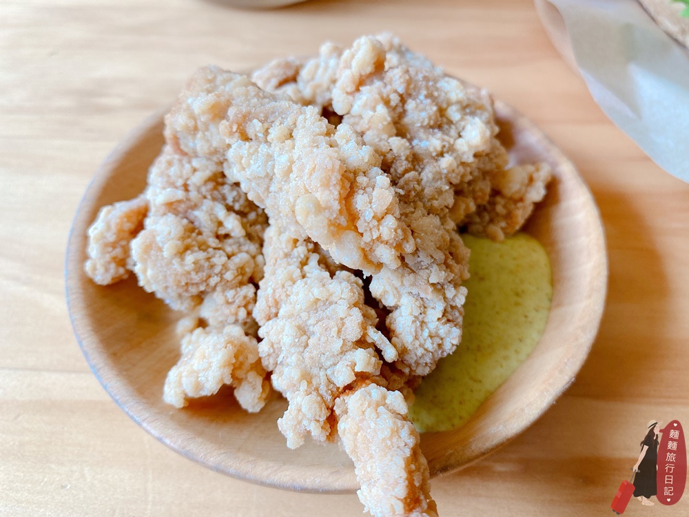套餐裡的咖哩炸雞很酥,味道非常香像是科學麵裡面調味包的感覺(我喜歡❤️),沾黃芥末醬真的不錯吃,忍不住一口接一口,唯一的小可惜就是麵皮比例過高,不然我覺得都可以單獨開一家店賣咖哩炸雞了🤣!