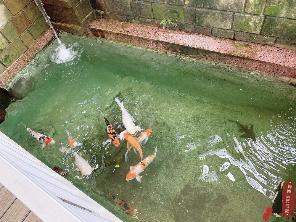 餐廳旁的木棧板下方有一個小魚池,可以觀賞魚,很適合家庭聚餐,帶小孩來吃飯。