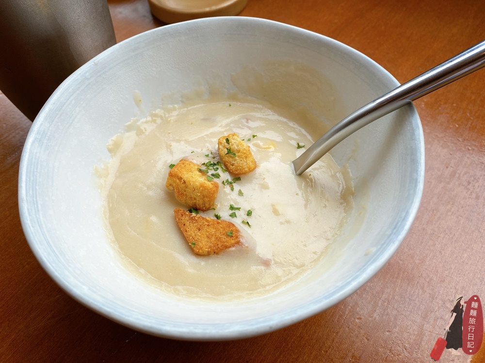 我原本以為商業午餐的濃湯可能會用沖泡式的那種,又稀又淡,沒想到這碗暖暖濃湯真的有夠暖,味道超濃、夠味、還夠燙,湯就是要熱熱喝才好喝啊!非常好喝!