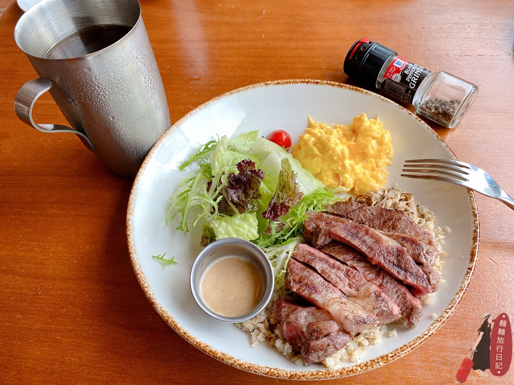 村長在努力控制飲食嘛~所以就點了低碳牛排花椰菜飯,是不是聽菜名就感覺超級健康 😂,牛排不怎樣一般搬,可能是低碳飲食所以料理非常清淡的關係,沒什麼調味但是肉味很重,牛肉較乾,吃起來有嚼勁、筋多,不是美味的牛排😭,整盤都是清淡飲食,所以都是食材的原味,有點後悔來餐廳點這種在家自己就能煮出來的味道說😫,下次我要點別的!